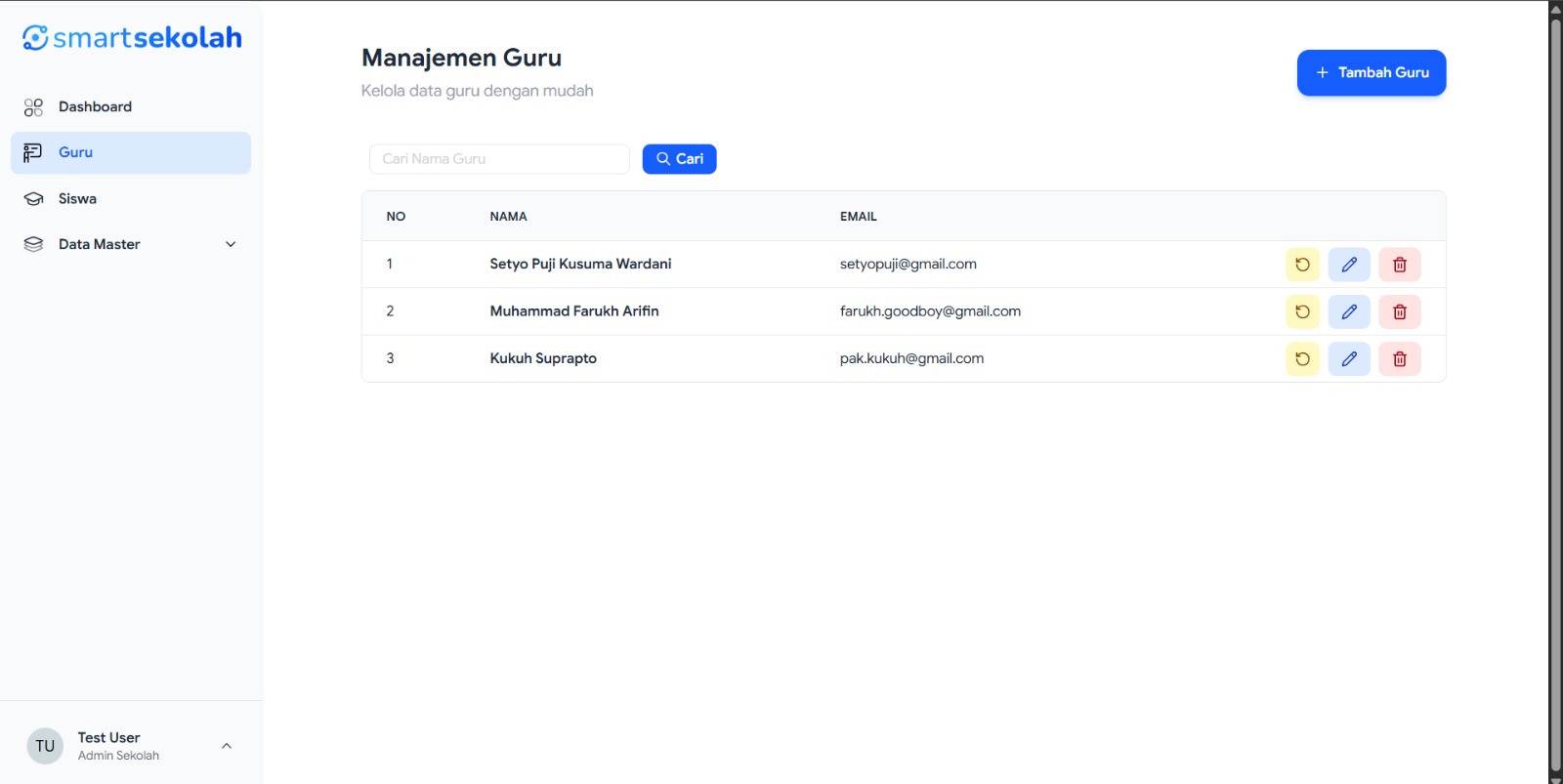 Kelola data guru secara terstruktur, mulai dari profil, jadwal mengajar, hingga riwayat aktivitas untuk mendukung proses administrasi sekolah.