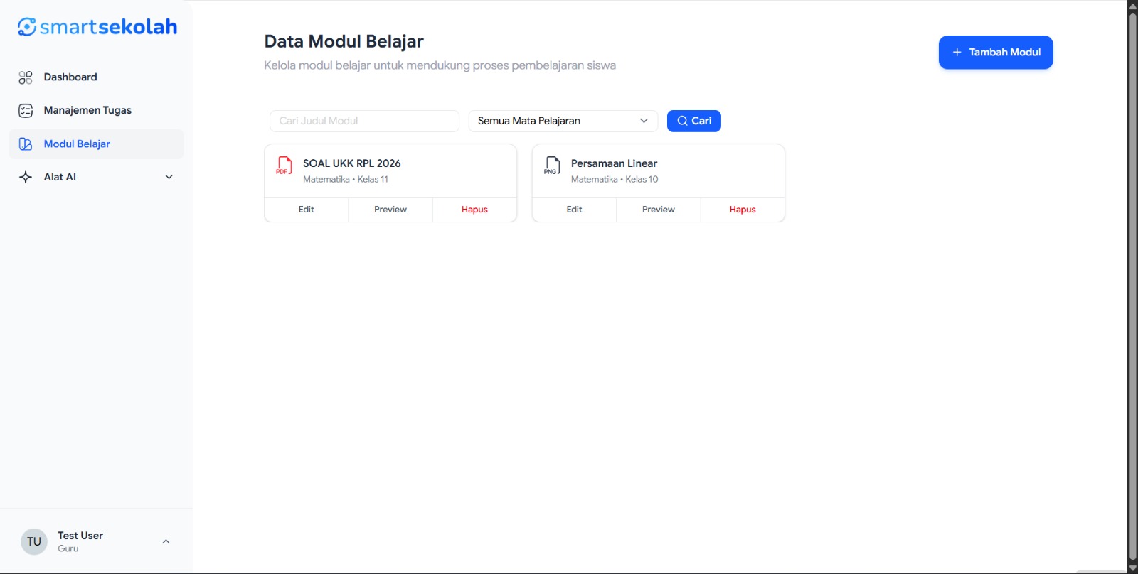 Kelola dan susun materi pembelajaran secara rapi, mulai dari modul, video, hingga dokumen pendukung untuk proses belajar.